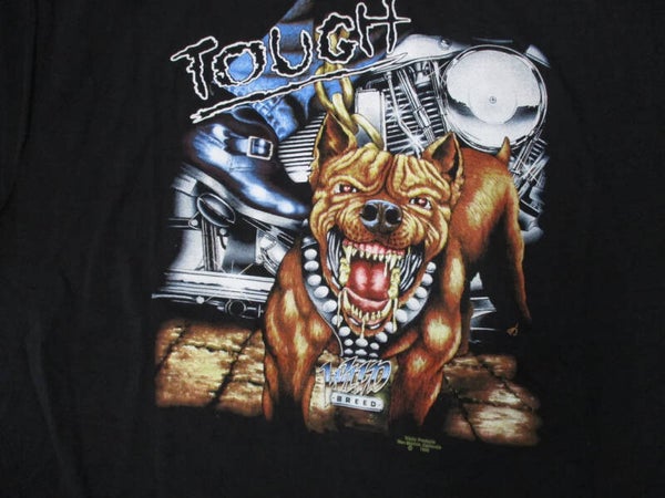 Tough! Wild Breed vintage printed black t shirt tough pitbull and harley engine USA 1990 x-large