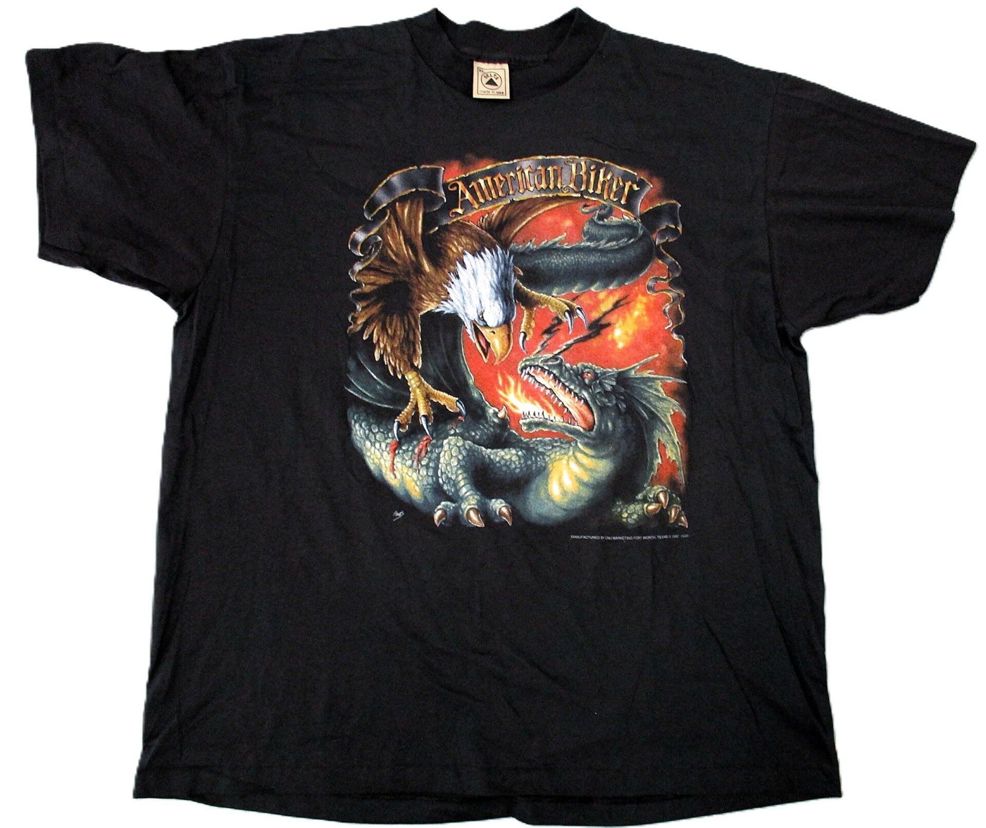AMERICAN BIKER VINTAGE BLACK T-SHIRT EAGLE VS DRAGON 1992 X-LARGE