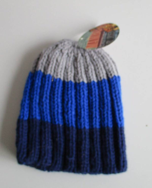 MAMBO 3 COLOR BLUE - GREY SCRIPT BEANIE ONE SIZE 90'S