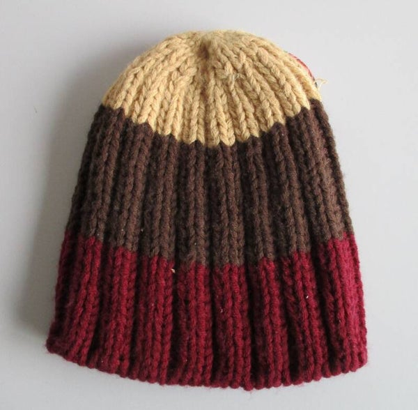 MAMBO 3 COLOR BEIGE BROWN MAROON SCRIPT BEANIE ONE SIZE 90'S