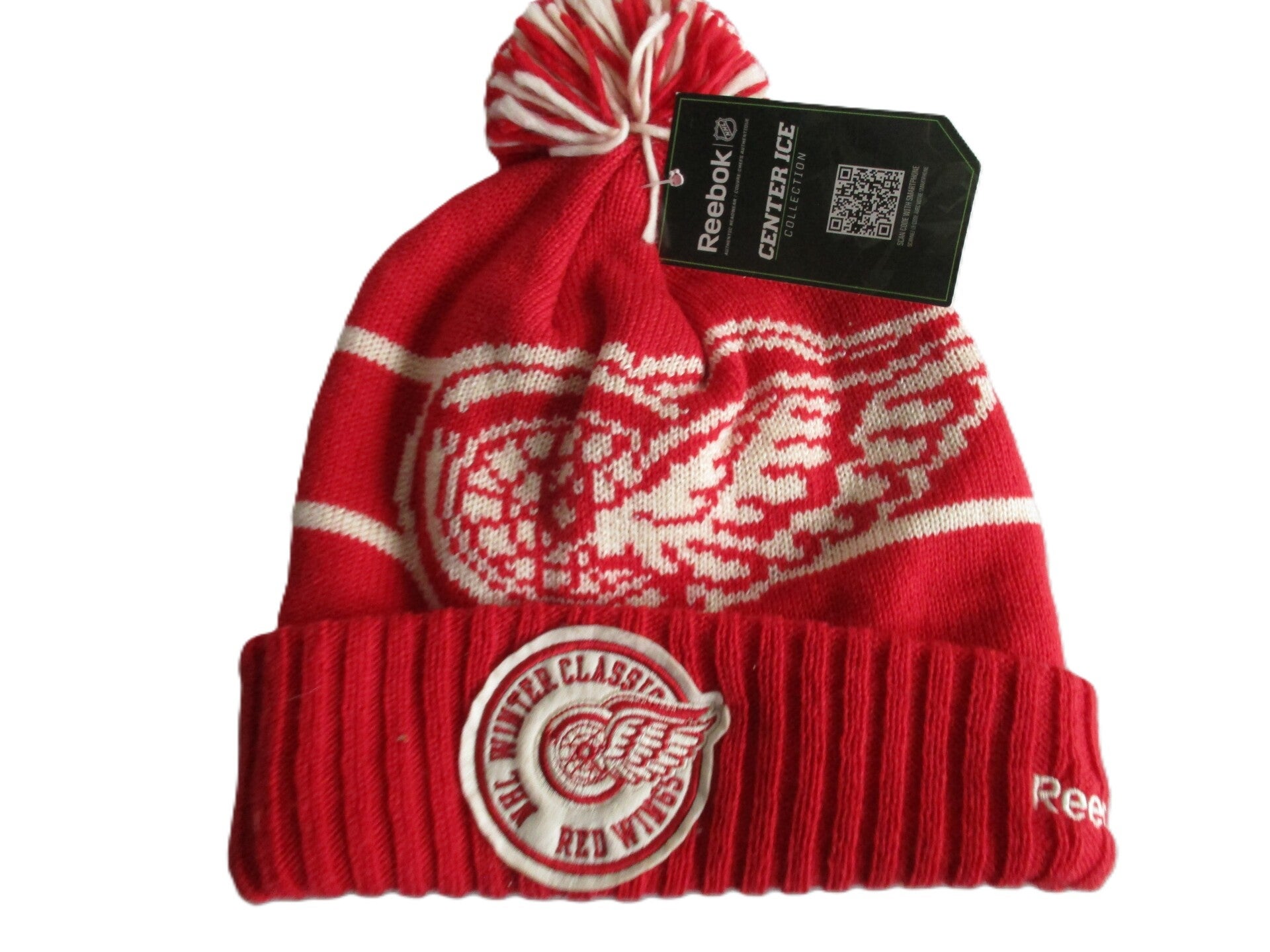 Detroit Redwings winter classics retro knit beanie Reeboknhl reebok met pom beanie / muts met borduring en omslagcenter ice seriesnieuw dik van kwaliteit !!!